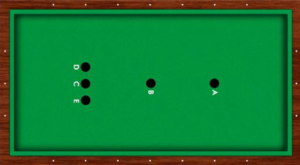 Het spel start nadat er is afgestoten om te bepalen wie begint. De rode bal wordt op positie A gelegd, de gele bal in het midden op een denkbeeldige lijn van C naar D, en de witte bal op een lijn van C naar E. Beide spelers stoten hun bal richting de korte band voorbij positie A en vervolgens naar de korte band voorbij posities E, C en D. De speler wiens bal het dichtst bij de korte band eindigt, mag kiezen wie begint.